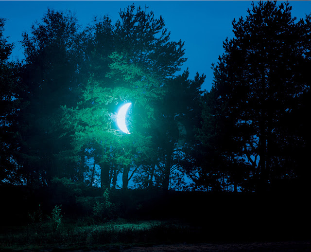 The moon was stuck in a pine tree’s crown